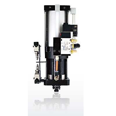 增壓缸是將一油壓缸與增壓器作一體式相結合,利用增壓器的大小不同受壓截面面積之比,因為壓力不變,當受壓面積由大變小時,則壓強也會隨大小不同而變化的原理,從而達到將氣壓壓力提高到數十倍的壓力效果,以預壓式增壓缸為例:當工作氣壓壓在液壓油表面時,液壓油會壓縮空氣作用而流向預壓行程腔,此時液壓油會迅速推動式件作位移,當工作位移遇到阻力大于氣壓壓力時缸則停止動作,此時,增壓缸的增壓腔因為氣動信)動作,開始增壓從而達到成型產品的目的。 氣液增壓缸是結合是氣缸和油缸優點而改進設計的,液壓油與壓縮空氣嚴格隔離,缸內的活塞桿接觸工作件后自動啟程,動作速度快,且較氣壓傳動穩定,缸體裝置簡單,出力調整容易,相同條件下可達到油壓機之高出力,低損耗,安裝容易,所占用的空間小,故障少無溫升之困擾,壽命長,噪聲小,等核心特性。 1、預壓式增壓缸:當工作氣壓壓在液壓油表面時,液壓油會因壓縮空氣作用而流向預壓行程腔,此時液壓油會迅速推動軸心作位移,當工作位移遇到的阻力大于氣壓壓力時預壓軸心則停止動作,此時,增壓缸的增壓段因為氣動壓力動作,增壓軸心亦開始作位移動作,并擠壓預壓缸體里的低壓油,使之增壓從而產生強大推力的效果。 2、直式增壓缸:當工作氣壓壓在增壓段活塞表面時,活塞會因壓縮空氣作用而流向油腔,此時液壓油會迅速推動軸心作位移,此時軸心移動的距離(行程)為高壓力行程(增壓行程)